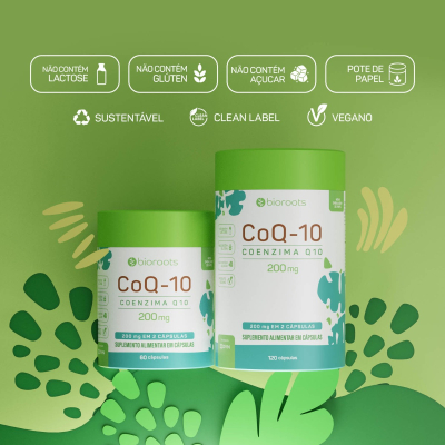 Com composição com 200 mg por porção (equivalente a duas cápsulas), a CoQ10 da Bioroots possui fórmula 100% vegana, com ingredientes limpos e livre de lactose, glúten, açúcares ou transgêncios.