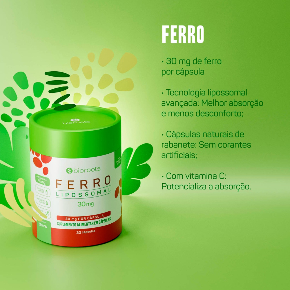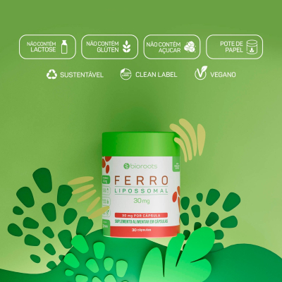 O Ferro 30mg da Bioroots promove uma saúde equilibrada. Com 30 unidades, oferece uma dose poderosa de ferro na forma lipossomal, que auxilia na redução do desconforto gástrico. Livre de lactose, glúten, sabores artificiais e transgênicos, é um suporte para uma suplementação segura e eficaz.