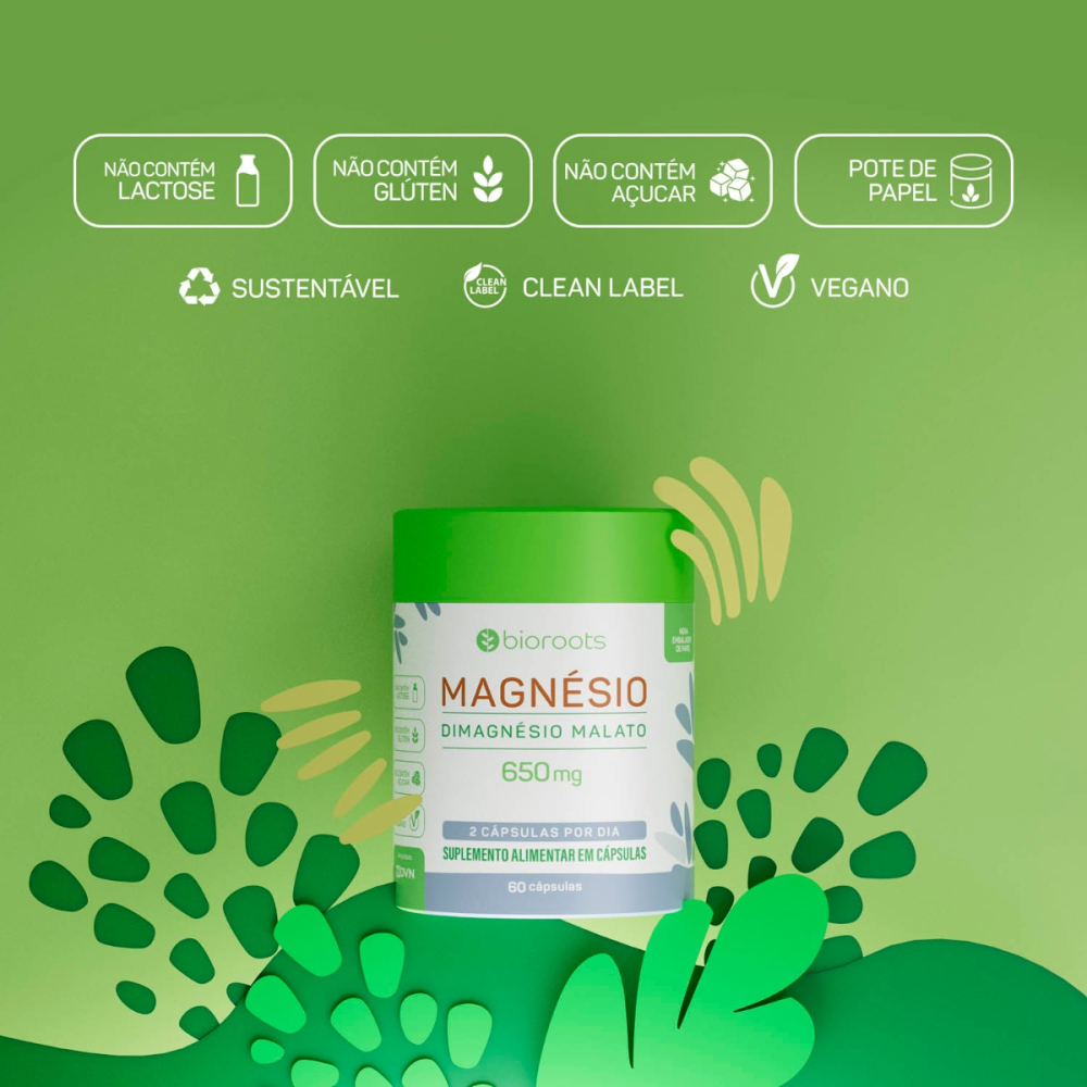 Magnésio Malato Vegan 650 mg com 60 cápsulas - Bioroots