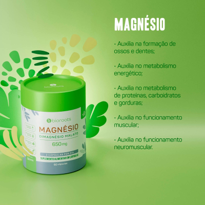 O Magnésio Malato Bioroots fornece 500 mg por porção. O Magnésio é um mineral importante e amplamente suplementado, visto que participa de mais de 300 reações bioquímicas fundamentais para o corpo humano. O magnésio Bioroots é malato, potencializando a absorção deste potente ingrediente, que pode melhorar a qualidade de vida, ajudando na saúde física, emocional e geral.