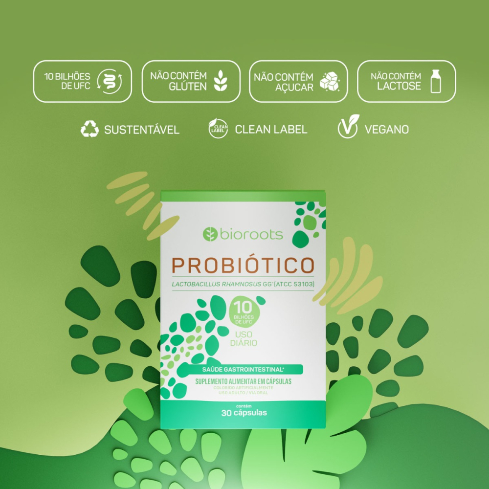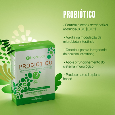 O Probiótico Bioroots com LGG® contém a cepa Lactobacillus rhamnosus GG, uma das mais estudadas do mundo, com mais de 1.200 publicações científicas e mais de 300 estudos clínicos em humanos. a cepa LGG® auxilia na modulação da microbiota, na integridade da barreira intestinal e no suporte à imunidade com a qualidade Bioroots, garantindo eficácia e estabilidade. Produto natural, livre de lactose e 100% plant based.
