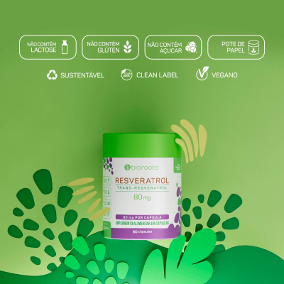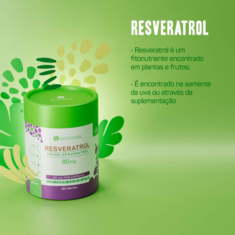 Conheça os benefícios do Resveratrol Bioroots, um antioxidante potente derivado das uvas e frutas vermelhas. Com 60 unidades, cada cápsula fornece 80mg de trans-resveratrol, ajudando a proteger suas células contra danos dos radicais livres e promovendo uma saúde equilibrada