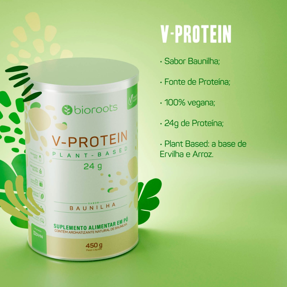 Proteína V-protein Plant Based baunilha 450g - Bioroots