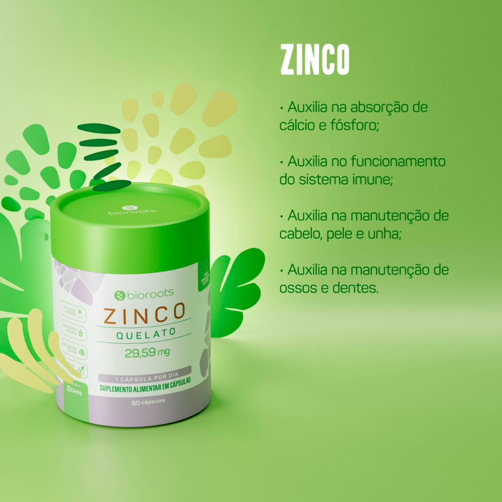 - Suporte à saúde óssea, auxiliando na absorção de cálcio e fósforo. Manter níveis adequados de zinco é fundamental para o equilíbrio de funções vitais do organismo. O Zinco Quelato Bioroots oferece uma solução prática e pura, garantindo o máximo aproveitamento desse nutriente essencial.